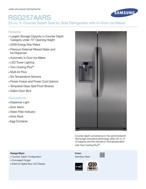 User manual, owner's manual, owner's. View the manual for the samsung rf27t5201sg here, for free. French door refrigerator (stainless steel) (85 pages) refrigerator samsung rf263beae** service manual.