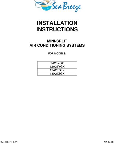 Sea Breeze Mini Split Air Conditioning Systems 12A23Ygx Users Manual from usermanual.wiki