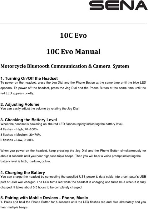 Turning on/off the headset to power on the headset, press the jog dial and the. Web page 1 10c evo 10c evo manual motorcycle bluetooth communication & camera system 1. Sena 10c evo user manual.