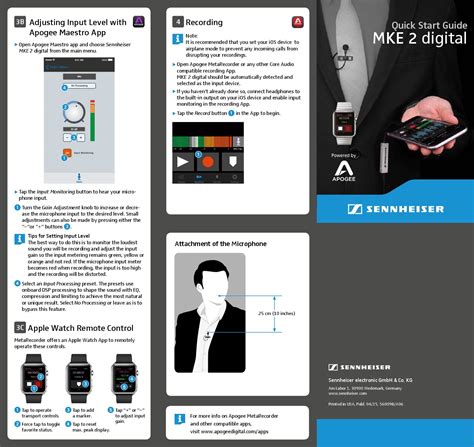 Kg Am Labor 1, 30900 Wedemark, Germany Www.sennheiser.com Mke 2 Digital Quick Start Guide 3B Adjusting Input Level With.