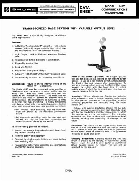 Shure 444 User Guide. Web shure 444t microphone user guide. Controlled magnetic communications microphone (2 pages) microphone shure wh20 user manual.