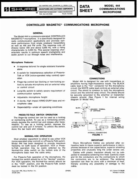 Web Shure 444D Megnetic Controled Fixed Microphone User Manual Controlled Magnetic® Fixed Station Microphone Contents [ Hide 1 General 2.