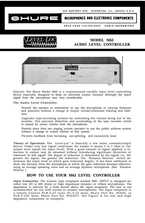 Shure M62 User Guide. The m62v was available from 1969 to 1976. How can i get any information about it?