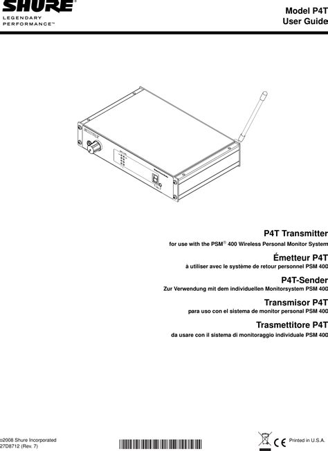 Database contains 7 shure p4t manuals (available for free online viewing or downloading in pdf):. Many people prefer to read the documents not on the screen, but in the printed version. P4t transmitter for use with the psm® 400 wireless personal monitor system (12 pages).