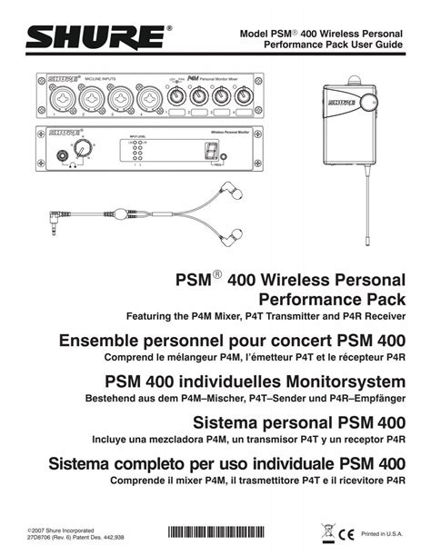 Web view and download shure psm400 instruction manual online. Performance pack featuring the p4m mixer, p4t transmitter and p4r receiver (19 pages) microphone system shure. Model p4t user guide p4t transmitter for use with the psm® 400 wireless personal monitor system émetteur p4t à utiliser avec le système de retour personnel.