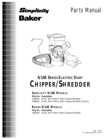 Commercial engine operator's manuals by vanguard engines. Web chippers/shredders simplicity 1692210 installation instructions. Description 1692902 6/14e, 6hp electric start chipper/shredder.